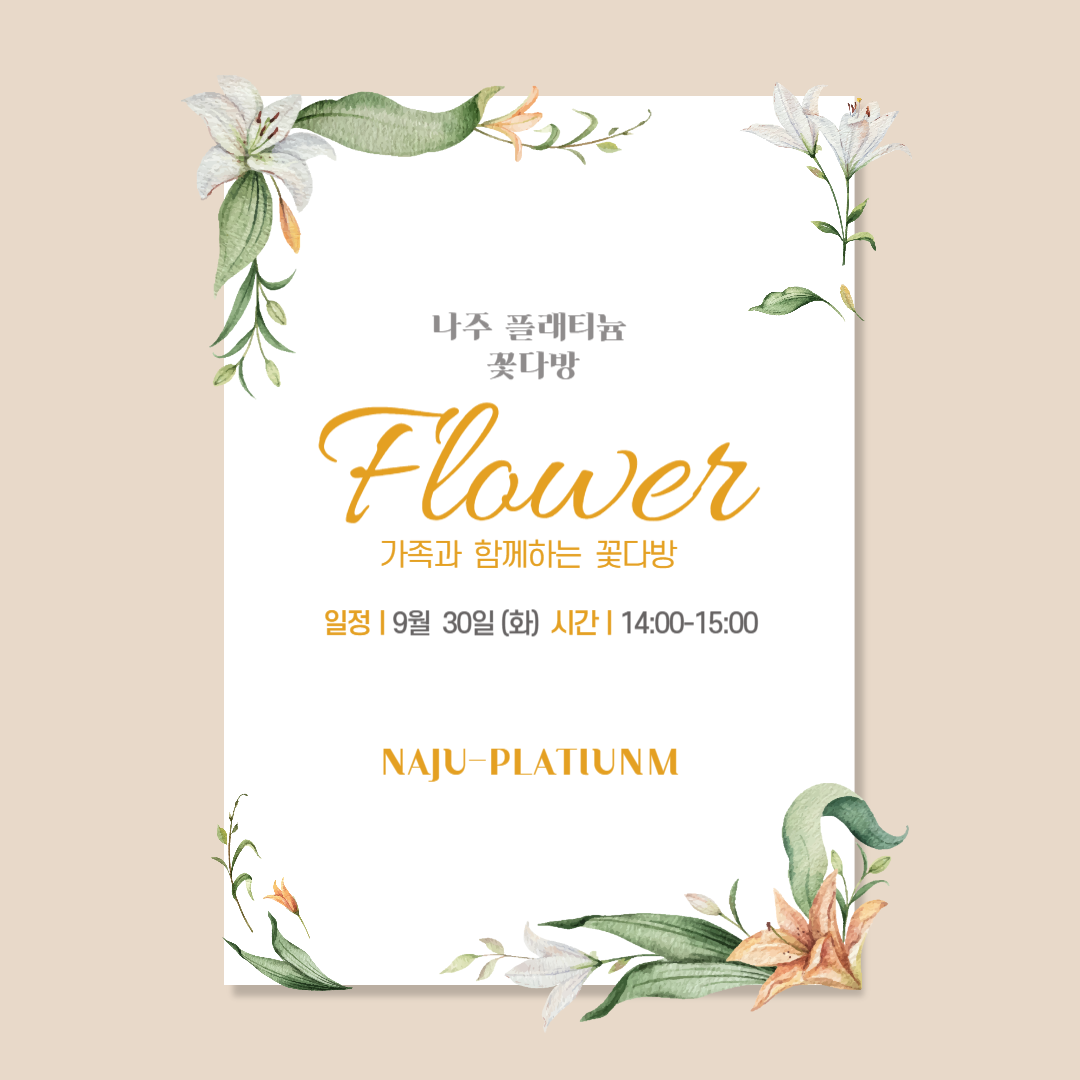 가족과 함께하는 꽃다방이 오픈합니다. 관리자 2025-07-27 11:00 3분기 가족과 함께하는 꽃다방이 오픈합니다. 추억의 음악과 함께 맛있는 차 한 잔 드시러 오세요. 첨부파일 꽃다방 초대장-001.png 다음글 8월 프로그램 계획표 올려 드립니다. 이전글 8월 보호자 소식지 목록